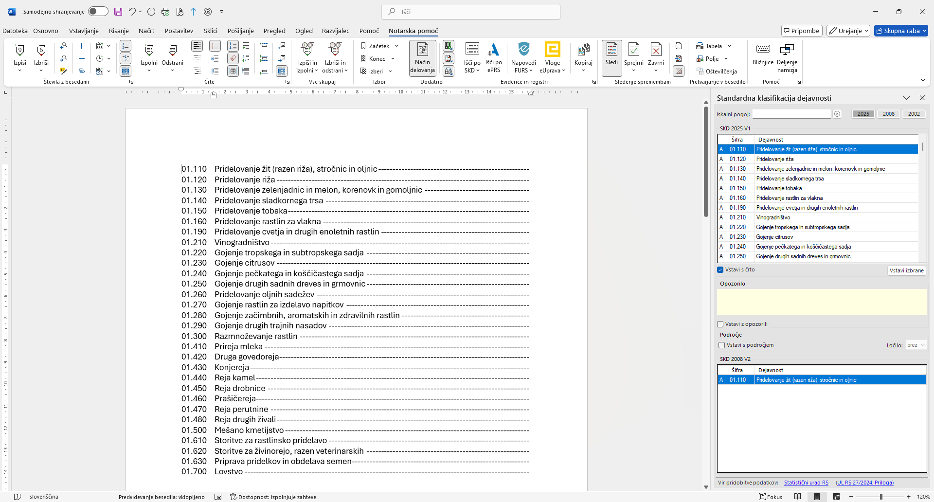 Avtomatizirano delo z dejavnostmi iz javno pridobljenih podatkov Statističnega urada RS,